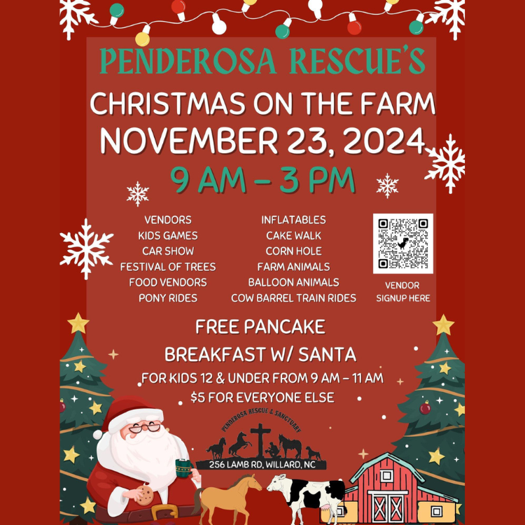 Penderosa Rescue’s Christmas on the Farm: free pancake breakfast for kids 12 and under!